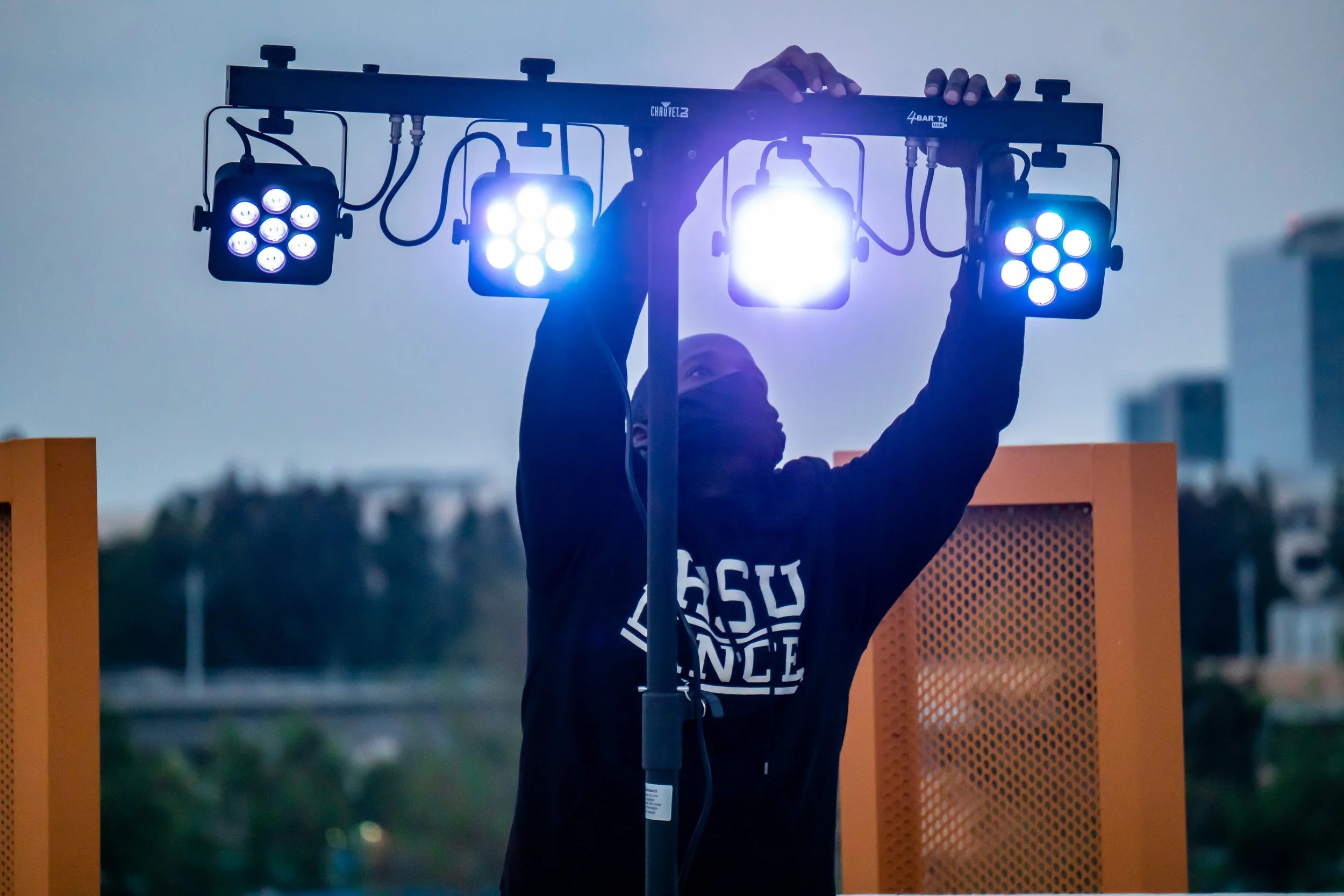 Entr’acte, meaning ‘between two acts’ and often associated with the musical number opening Act 2 of a musical, was inspired off of the return to live performance after the pandemic. Throughout the pandemic, many artists had to halt their careers. We not only had to lose the in-person magic of performing arts, but the connection of making that art with others. During the pandemic, many artists turned towards virtual work to still create, but that in-person magic of the arts remained on intermission. In Spring of 2021 when this production occurred, we were able to return to in-person arts, but only outside and masked. We saw this as the beginning to our Act 2, bringing new hope and excitement to artists to collaborate again. Entr’acte tells the story of sorrow away from in-person performing and the hope of returning to make art with others again, even if we aren’t back to where we used to be.