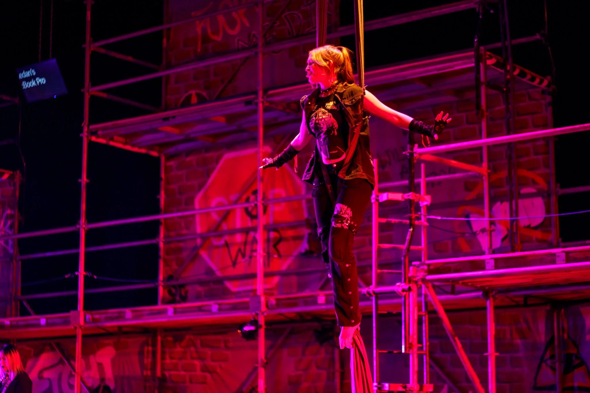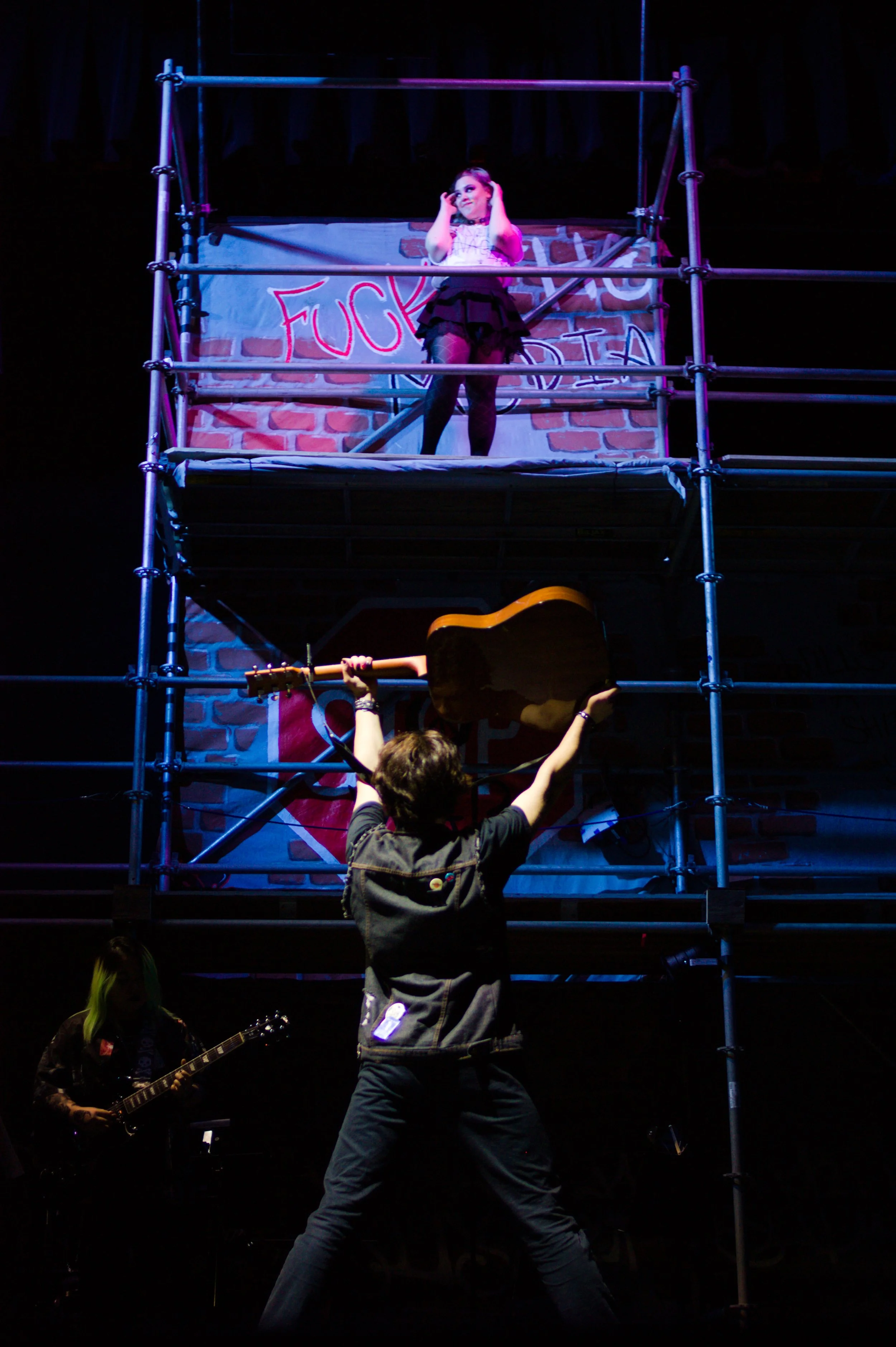 Aerial Silks: In our production, we made use of aerial silks to represent what was not real on stage. This mainly took form during any scene with St. Jimmy, the character that personifies Johnny’s drug addiction, and any drug induced hallucinations that follow.