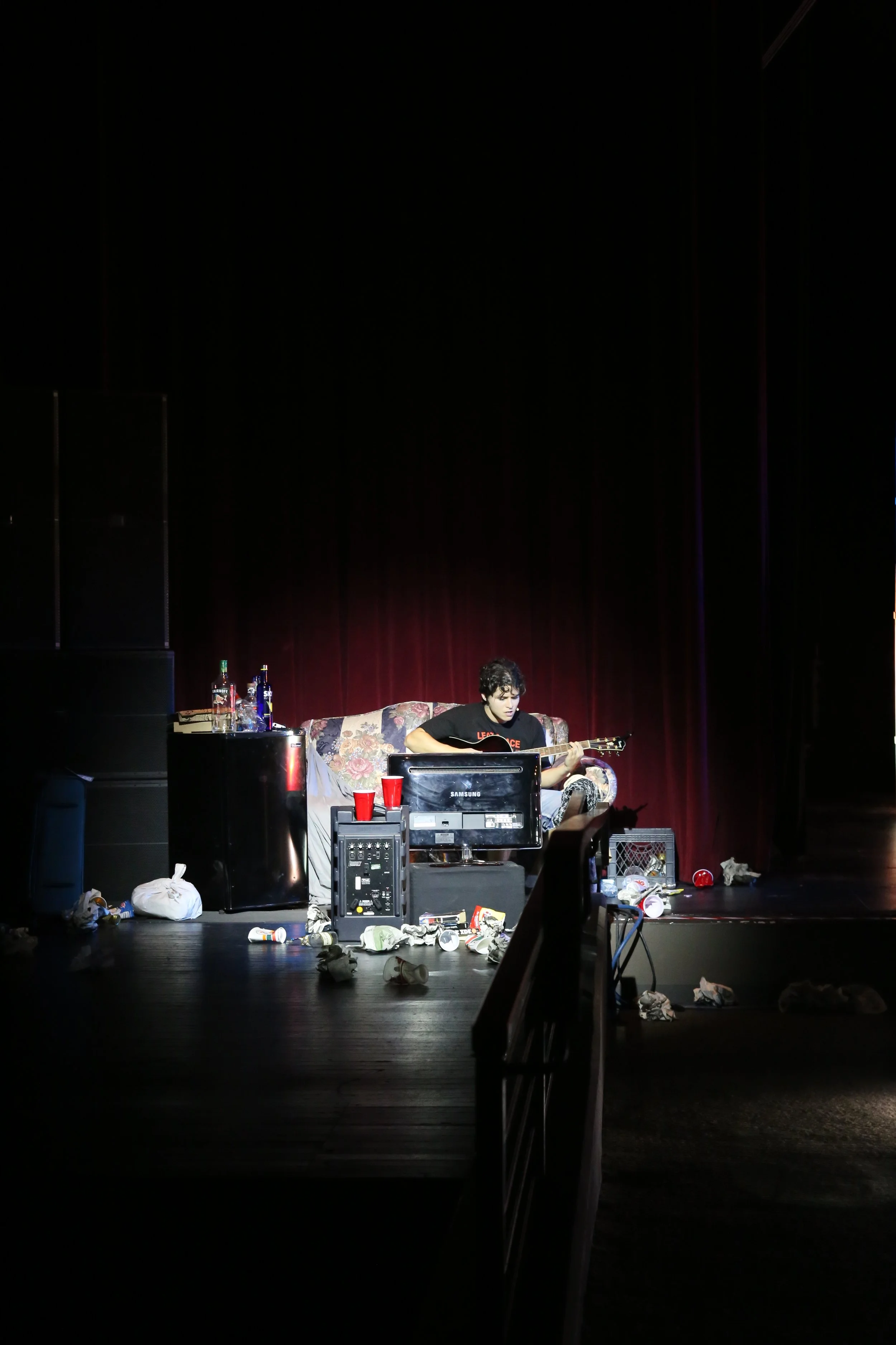 TVs: The TVs in our production were used for multiple different things, including clips of the current world crises and news reportings in the opening of the show, as well as date cards for each of Johnny’s letters, creating a timeline across the stage through the TVs of the journey we follow.