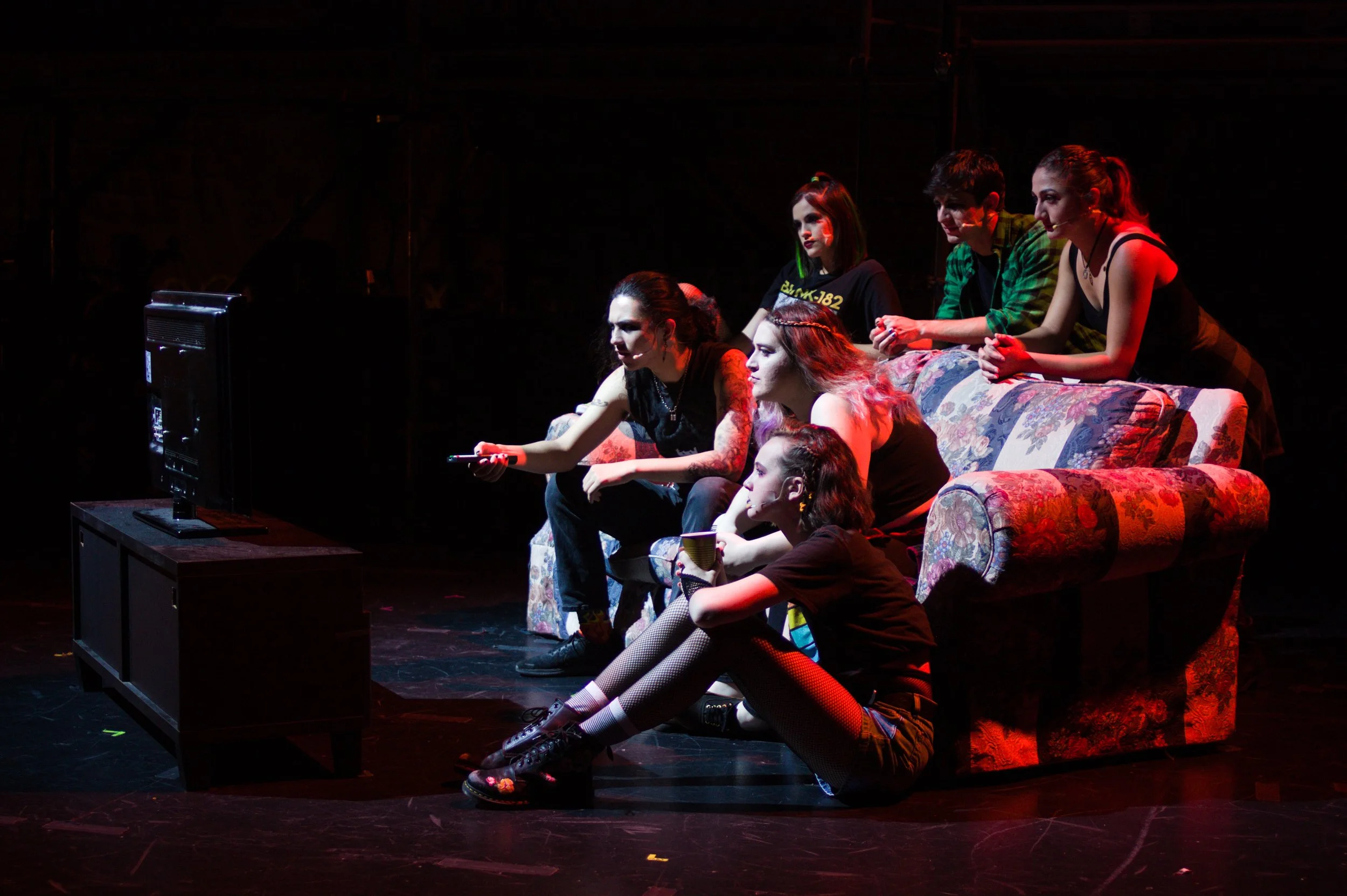 American Idiot is a sung-through rock musical based on the 2004 concept album of the same name by punk rock band Green Day. The show follows the journey of friends Johnny, Will, Tunny, and the rest of their community as they struggle to find meaning and identity in a post-9/11 world. In hopes to escape the media-consumed, unsatisfying life of suburbia, the three friends flee the limitations of their hometown for the rush of city life, but are quickly isolated from each other when life pulls them in different directions. Empowering, edgy, and bursting with energy, American Idiot brings us a relatable story that resonates with all of us, begging the question, “What does it mean to be young in contemporary America?”